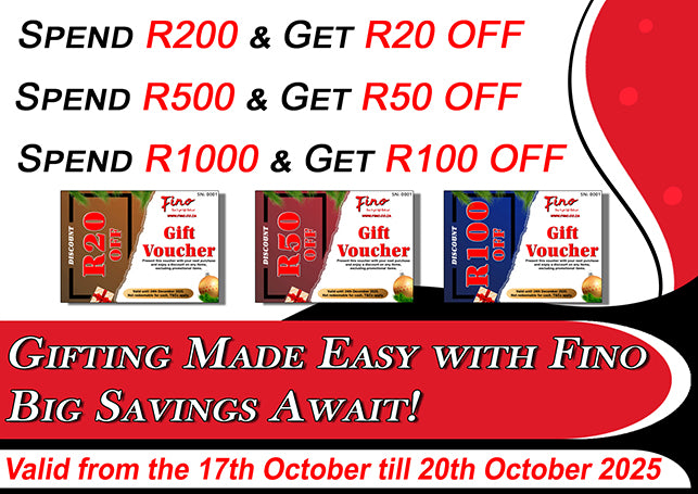 Spend R600 or more & get Free Delivery for JHB Areas Only.