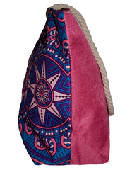 Fino JH-18051 Exotic Print Canvas Oversize Beach /Shopping/ Tote Bag - Purple & Pink