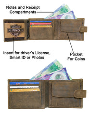 Fino SK-LV3147 Full Grain Genuine Leather Men’s Clip Closure Wallet - Brown