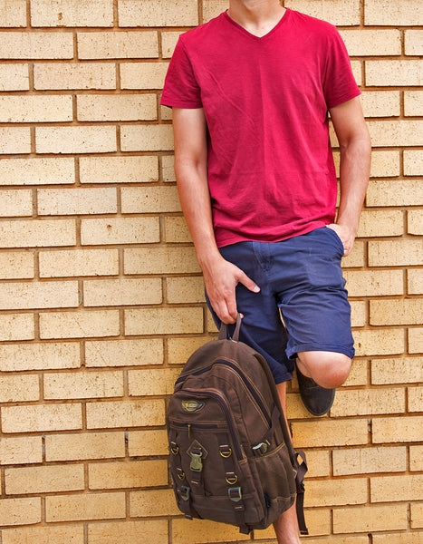 Our Vintage design with Top Quality Genuine Leather and Canvas, this is a casual, simple and generous backpack. The laptop backpack is ideal for School, and College going Students.
