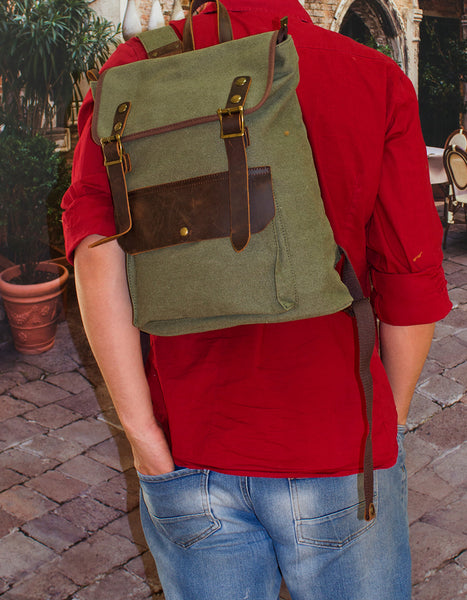 Fino SL-033 Unisex Canvas and Genuine Leather Backpack with Brass Hardware