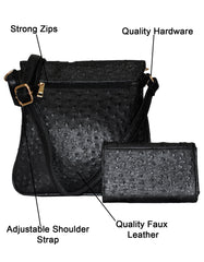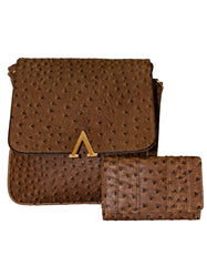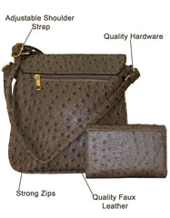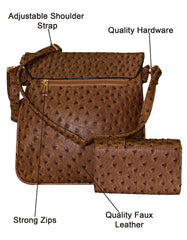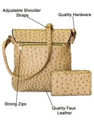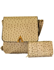 Fino SK-1857+67-093 Faux Leather Ostrich Cross Body Bag & Purse Set